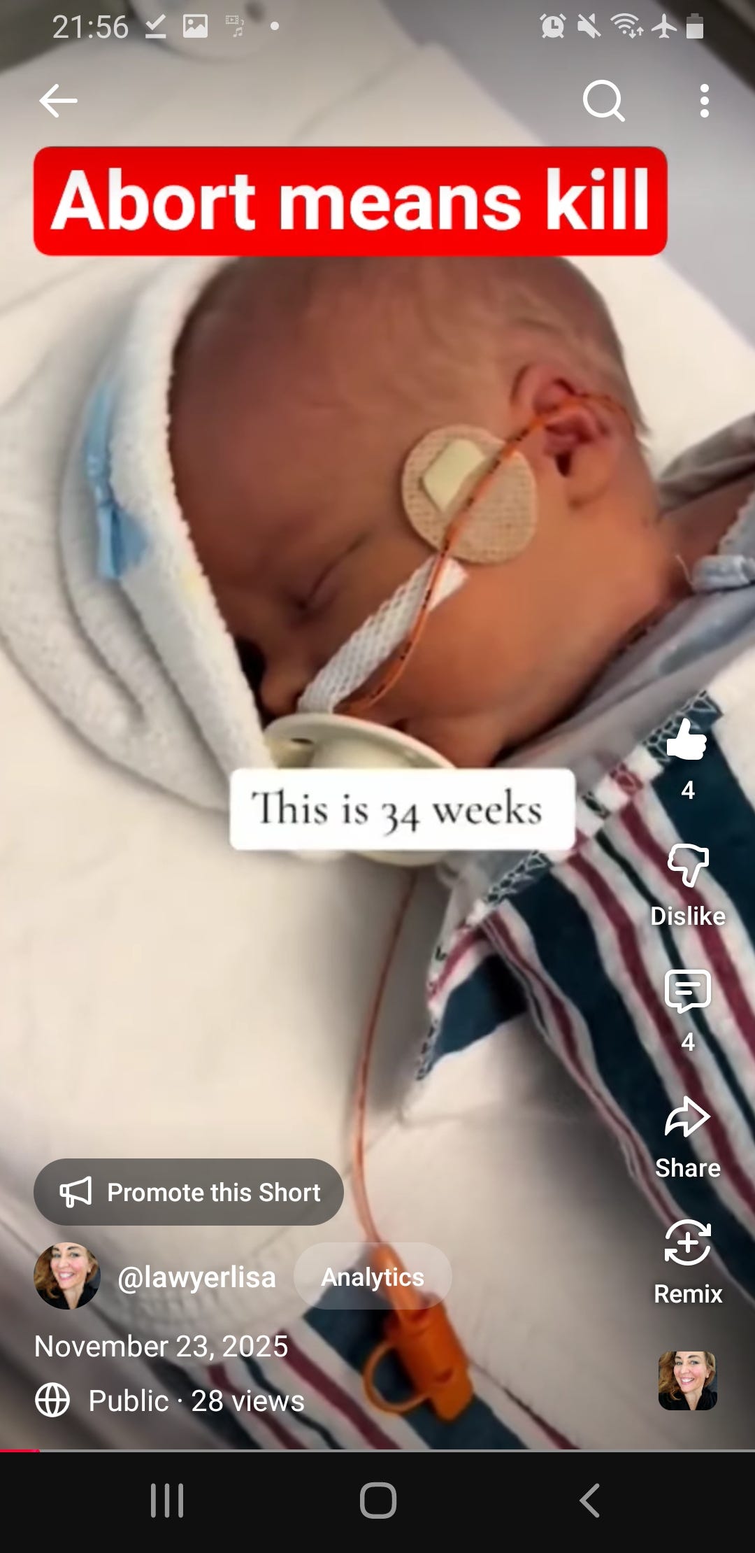 And if you stand up for this 34 week old baby. And you are prolife? That's looney tunes hate. Satanic inversion.